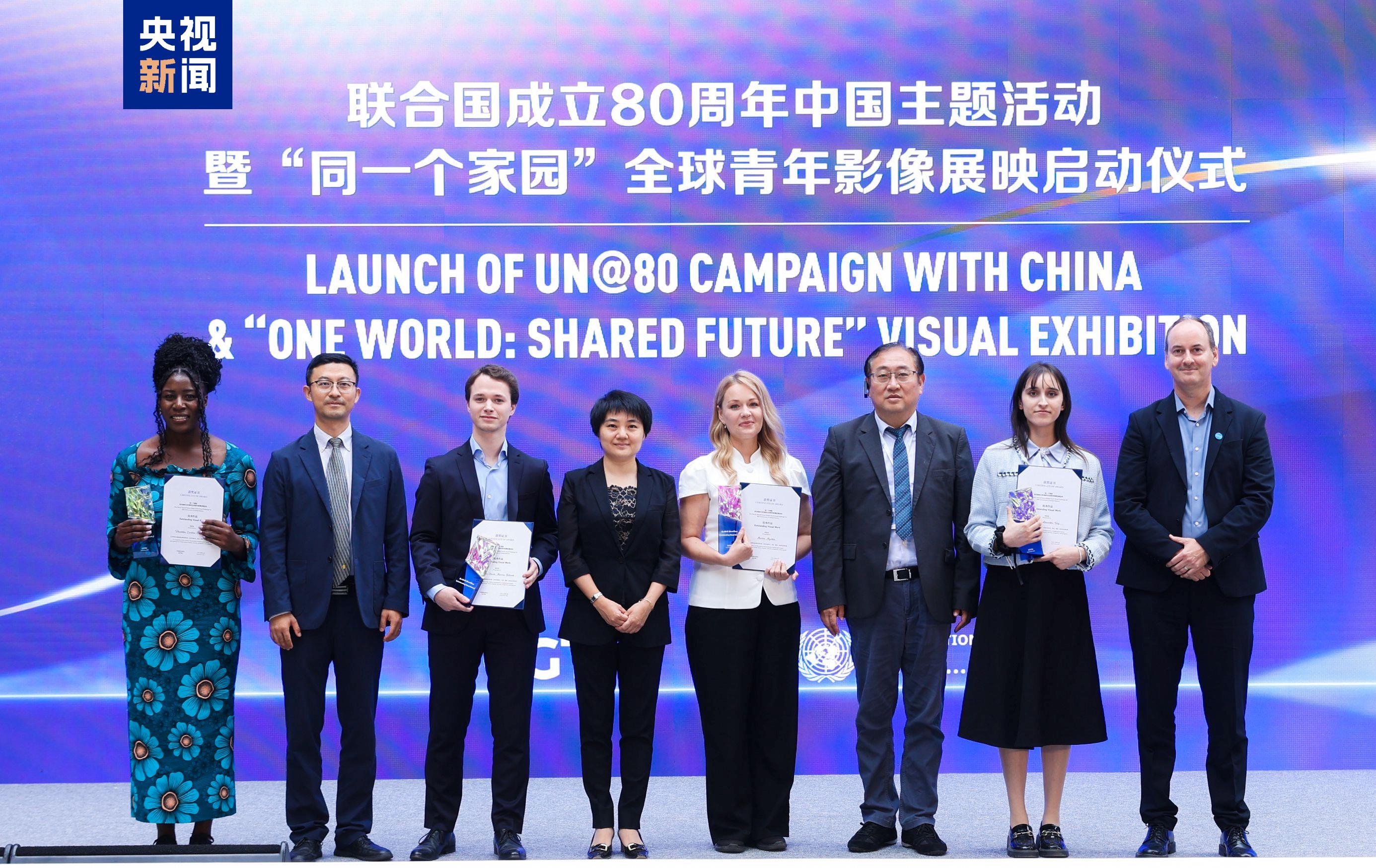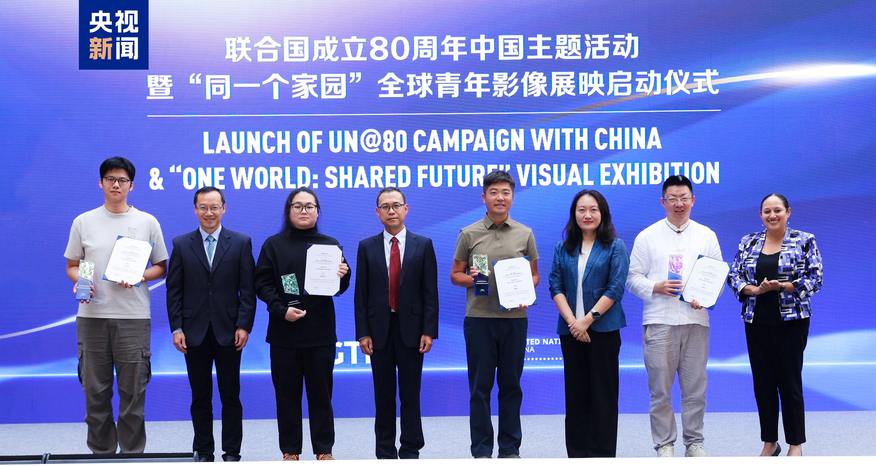 活动现场,与会嘉宾共同启动联合国成立80周年中国主题活动暨“同一个家园”全球青年影像展映。由CGTN(中国国际电视台)于2025年7月发起的“同一个家园——联合国成立80周年全球青年影像征集活动”共收到全球51个国家的5.6万件作品,35件作品获奖并在启动仪式上展示,来自中国、法国、俄罗斯、葡萄牙、马拉维等国的优秀作品创作者代表现场获颁证书。这些作品即日起将在CGTN官网及社交平台展映。