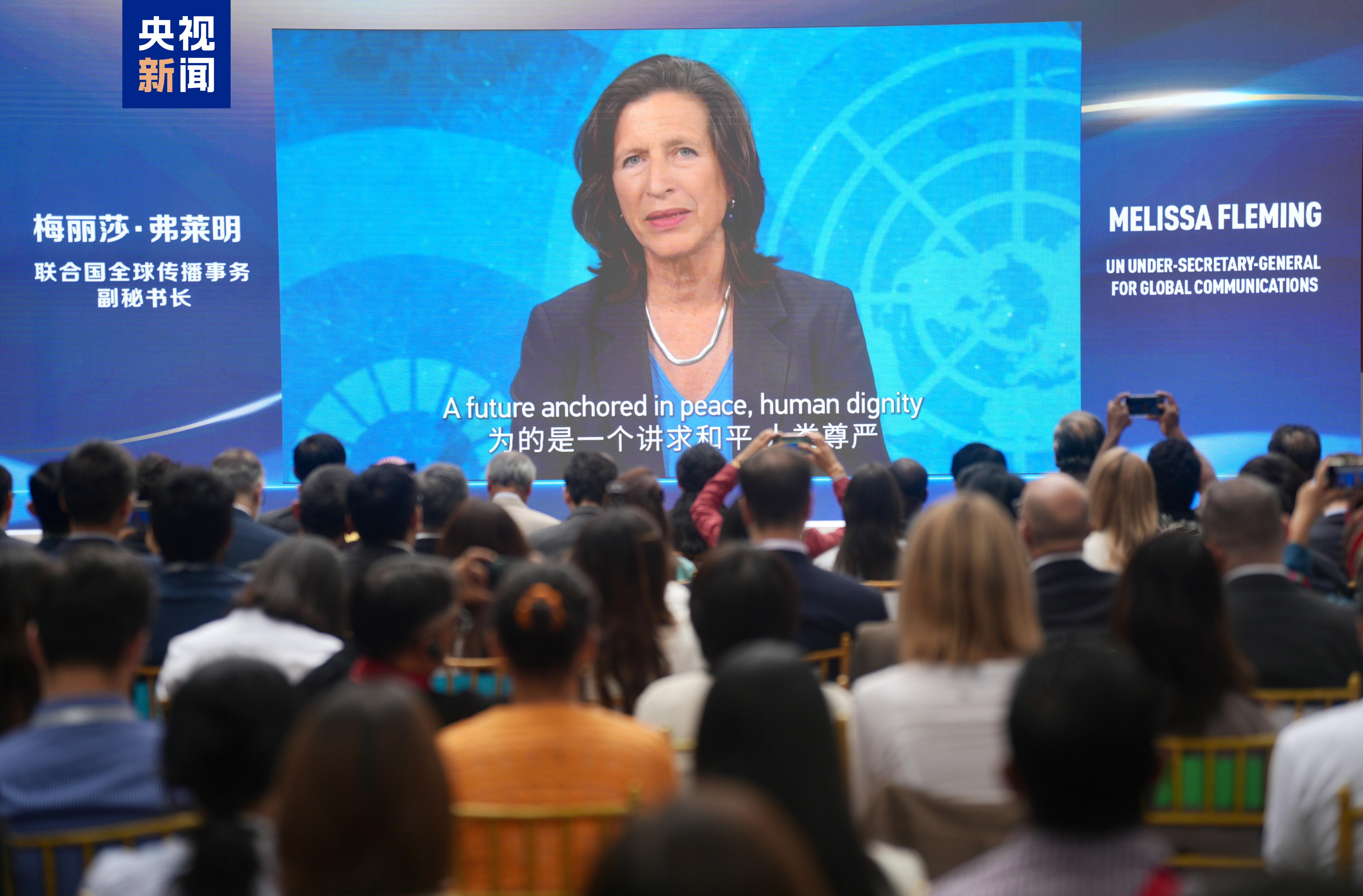 9月23日,由中国中央广播电视总台与联合国驻华系统共同举办的联合国成立80周年中国主题活动暨“同一个家园”全球青年影像展映启动。中宣部副部长、中央广播电视总台台长慎海雄,联合国全球传播事务副秘书长梅丽莎·弗莱明作视频致辞。联合国驻华协调员常启德出席活动并致辞。联合国官员及多国驻华使节、联合国驻华机构代表、多国媒体机构代表百余位嘉宾参加活动。