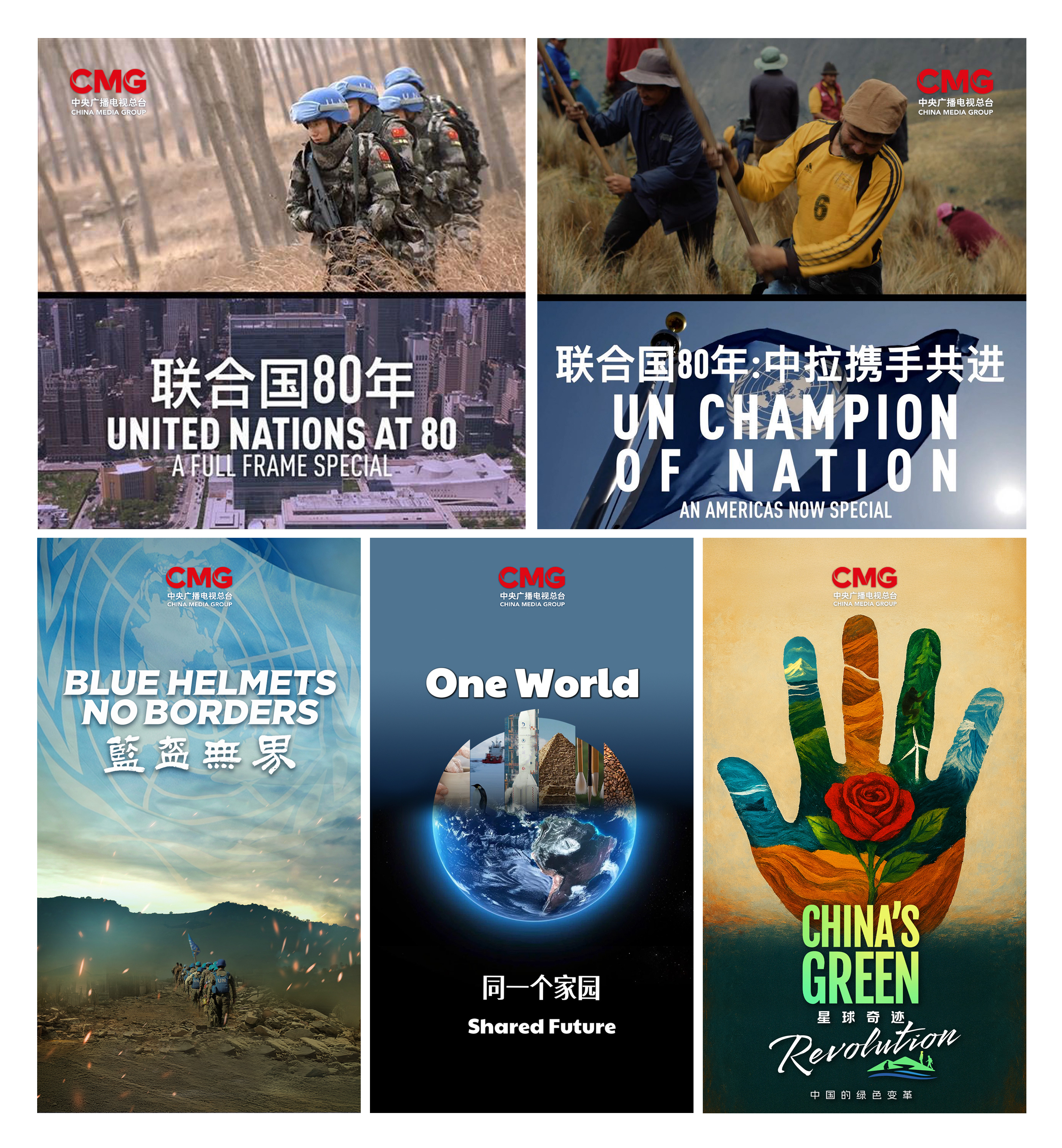 由CGTN制作的《联合国80年》《联合国80年:中拉携手共进》《星球奇迹:中国的绿色变革》《蓝盔无界》《同一个家园》等系列精品专题片现场发布,主题涵盖中国在联合国全球发展中的贡献、中国海外维和行动、中拉可持续发展合作、中国绿色转型实践、多元文明交流互鉴等内容。