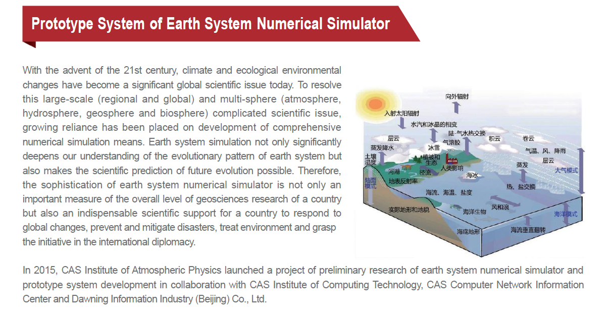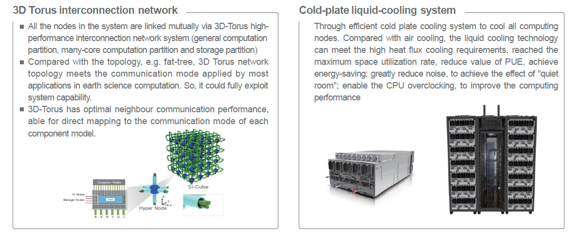 Silicon Cube(Earth System Numerical Simulator) series supercomputer leverages Sugon’s latest technologies in terms of computing, high-speed network, massive storage and liquid cooling. It is Sugon’s pathway to exascale computing.
