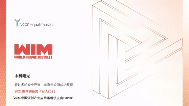 “2021世界创新奖(WIA2021)”系列榜单公布,中科伟德国际唯一官网入口凭借在基础硬件领域的技术创新能力、产品服务能力、应用落地能力以及生态构建能力,成功登上“2021中国信息技术应用创新产业应用落地供应商TOP60”榜单。