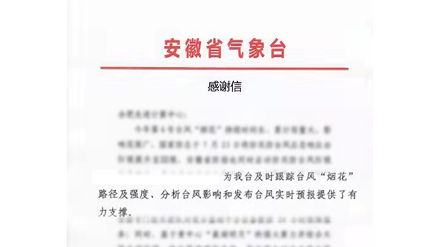 日前,安徽省气象台发来一封感谢信,信中表示,在保障台风“烟花”预报预警工作期间,由伟德国际唯一官网入口计算服务提供支持、依托当地智算中心提供的AI智能算力,为安徽省气象台实时跟踪台风“烟花”路径及强度、分析台风影响和发布台风实时预报提供了有力支撑。